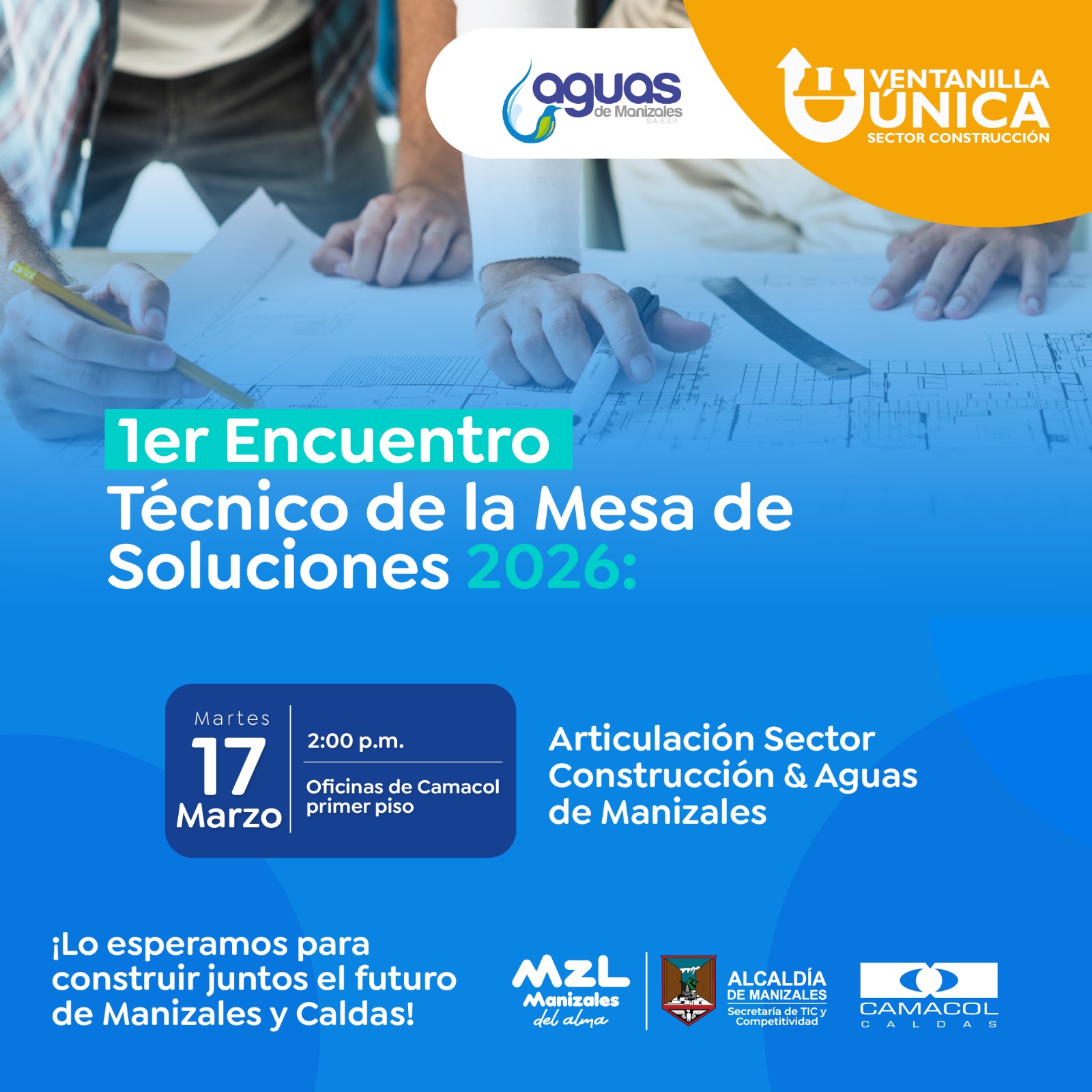 Sabía que el recibo de redes es una de las etapas más cruciales para terminar una obra? Por eso, nuestro primer Encuentro Técnico 2026 será con el equipo de Aguas de Manizales.