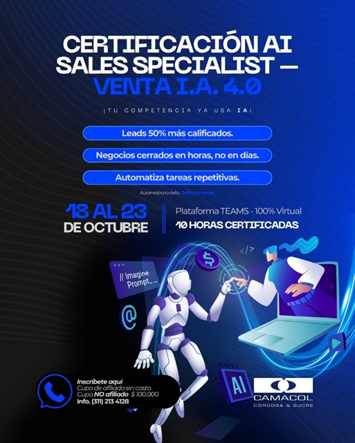 Con la Certificación AI Sales Specialist: VENTA I.A. 4.0, el programa más ambicioso para impulsar su productividad y aumentar sus resultados comerciales.