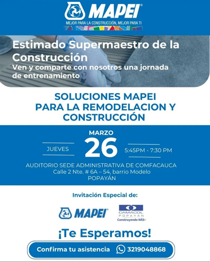 Le invitamos a participar en esta jornada de entrenamiento diseñada para fortalecer sus conocimientos y actualizarle en soluciones innovadoras para la remodelación y construcción.