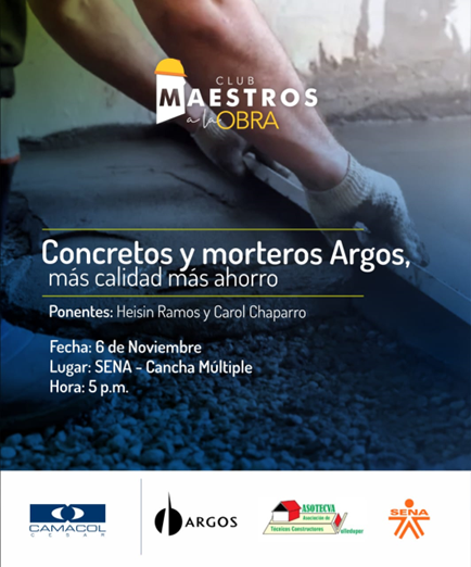Camacol Cesar, con el apoyo del SENA y Asotecva, realizará el próximo 6 de noviembre una nueva jornada del programa Club Maestros a la Obra, patrocinada por Cementos Argos.