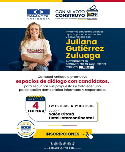 En Camacol Antioquia promovemos espacios de diálogo con candidatos, para escuchar sus propuestas y fortalecer una participación democrática informada y responsable.