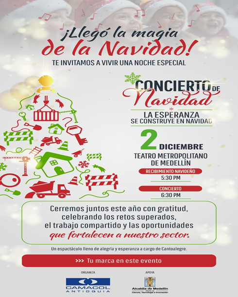 Acompáñenos este 2 de diciembre en el Teatro Metropolitano de Medellín para disfrutar de un espectáculo lleno de alegría, música y espíritu navideño a cargo de Cantoalegre.