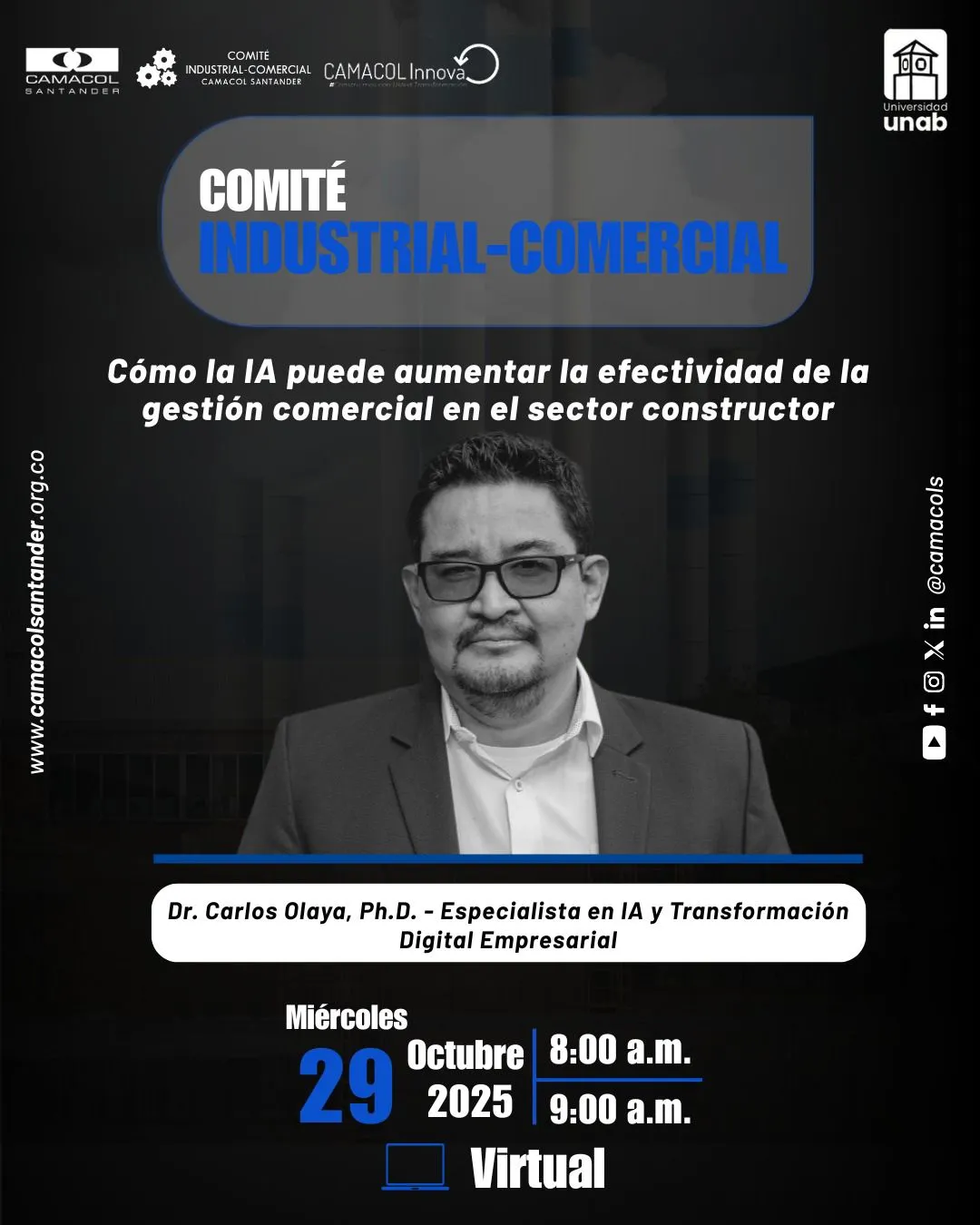 Camacol Santander realizará el ‘Comité Industrial-Comercial’ el 29 de octubre, a partir del las 9:00 a. m., en el cual se analizará cómo la inteligencia artificial puede aumentar la efectividad de la gestión comercial en el sector constructor.