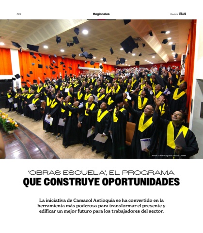 Fotos: C%u00e9sar Augusto Salazar CorreaQUE CONSTRUYE OPORTUNIDADES %u2018OBRAS ESCUELA%u2019, EL PROGRAMALa iniciativa de Camacol Antioquia se ha convertido en la herramienta m%u00e1s poderosa para transformar el presente y edificar un mejor futuro para los trabajadores del sector. 52 Regionales Revista