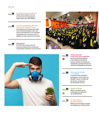 P%u00c1G . 38P%u00c1G . 52P%u00c1G . 58P%u00c1G . 60P%u00c1G . 72P%u00c1G . 42P%u00c1G . 49Invitado Congreso CamacolC%u00e9sar Garc%u00eda explica c%u00f3mo la econom%u00eda de la longevidad lo inspir%u00f3 para crear AVU M%u00e9xico%u2018Obras Escuela%u2019 construye oportunidadesDonde se levantan edificios y se moldea el crecimiento urbano, tambi%u00e9n se transforma el presente y se forja el futuro de cientos de trabajadores del sector.Renovaci%u00f3n urbana y movilidadLa primera l%u00ednea del Metro de Bogot%u00e1 y el tren ligero de Medell%u00edn tienen el potencial de generar programas de renovaci%u00f3n urbana.Camacol VerdeMitos y verdades de los materiales con atributos de sostenibilidad.La %u2018CIA%u2019 super%u00f3 las expectativasBalance de la Primera Cumbre de Inteligencia Artificial (CIA).Luis Fernando Mej%u00eda, invitado especial de %u2018Urbana Te Ve%u2019El presidente de Fedesarrollo habl%u00f3 de la situaci%u00f3n del pa%u00eds y de lo que ser%u00e1 su participaci%u00f3n en el Congreso Colombiano de la Construcci%u00f3n, un di%u00e1logo de c%u00f3mo reinventar el sector.RegionalesEl cl%u00faster de construcci%u00f3n de Camacol Caldas lanz%u00f3 cartilla para estandarizar proyectos constructivos.Edici%u00f3n 106 7