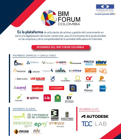 Es la plataforma de articulaci%u00f3n de actores y gesti%u00f3n del conocimiento en torno a la digitalizaci%u00f3n del sector constructor, para el incremento de la productividad en las empresas y de la competitividad de la actividad edificadora en Colombia. MIEMBROS DEL BIM FORUM COLOMBIAMIEMBROS EMPRESA Y CONSULTORESMIEMBROS ALIADOS MIEMBROS ELITE